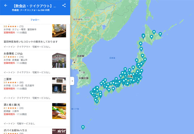 テイクアウトやデリバリーを実施されている当社のお客様のマップを作成し、別店舗から当社を利用してくださっているお客様に配信し、ご利用をお願いしました。
