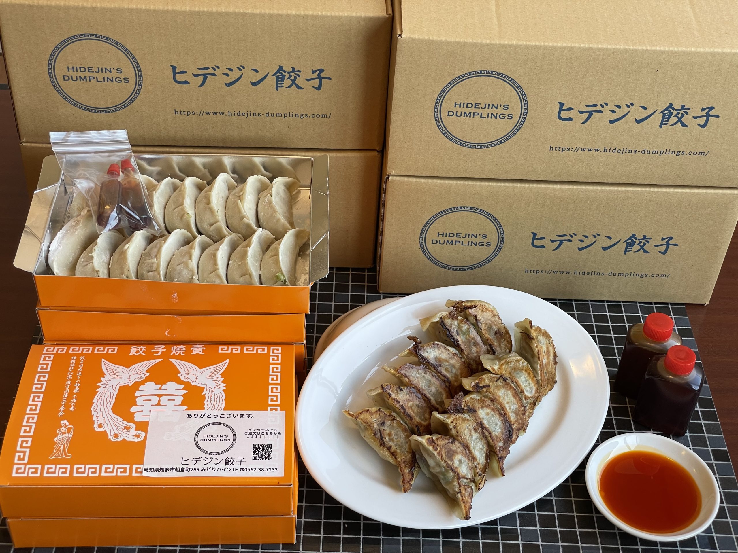 ご飯のおかずに、ビール・ハイボールのお供に『最高の餃子』 肉汁や香辛料だけに頼らない『本当に旨い餃子』があります。 【ヒデジン餃子】は中国料理店ですがその中でも爆発的人気の餃子。 餃子の皮は、名古屋の人気パン店から特注の【北海道産ブランド小麦】を店内で毎朝練り上げます。 肉や野菜など材料は産地にこだわり研究を重ねたバランス抜群の『餡』を一晩寝かせ熟成させた餃子の皮に全てを手作業でひとつひとつ丁寧に包みます。 おかげさまで、多い時には1日1,000個ご注文頂くこともあります。 『自慢の餃子を日本全国の餃子好きにお届けしたい!』思いから、オンラインショップを開設致しました。皆様のご利用をお待ち致しております。