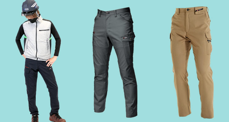 カーゴパンツとは、太ももや膝下にある大きなマチ付きのポケットが特徴のズボンです。両手をふさがずに道具の持ち運びが可能で作業パンツに適しています。