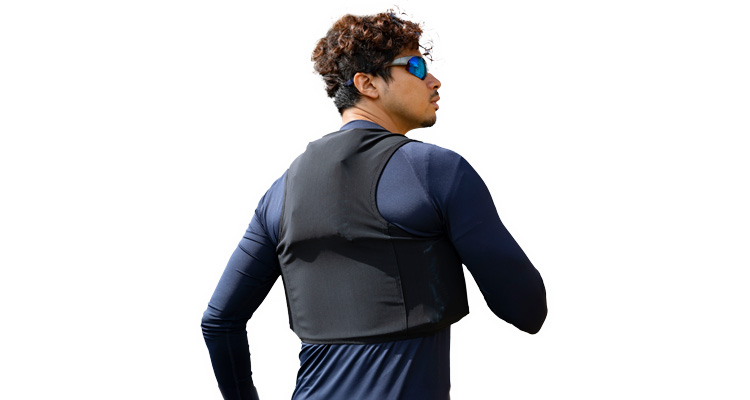 ウェアの上部にファンがあることで、汗をかきやすい脇や首、背中へダイレクトに風が流れます。気化熱で涼しさを感じやすくなるため猛暑にも最適です。もちろん、体の前面部分にもほどよく風が流れる設計になっているので、ウェア全体に風が循環し、効率的に体を冷やします。