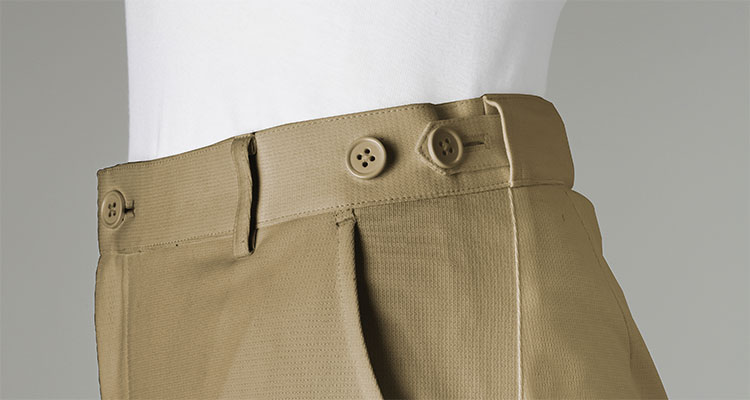スーツなどの長期にわたって着用するアイテムなどは、ウエスト寸法の変動が考えられるます。そんなとき、アジャスター付きのアイテムならウエストの伸縮が可能です。