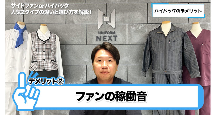 風量によってもファンの可動音は変わるのですが、周りの人との連携会話が必要な現場や大きい音が苦手な方には不快に感じるかもしれません。