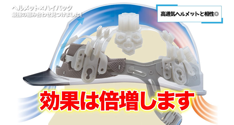 実はヘルメットとハイバックの空調ウェアのセット使いが、夏場のヘルメットの暑さや蒸れ地獄を解消する最強の組み合わせなんです。