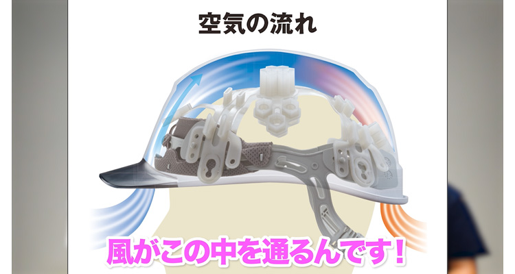 発泡スチロールがないことで、装着時に頭頂部の温度は約8℃以上、湿度は約20%以上下がります。