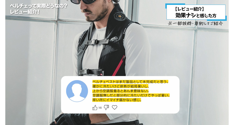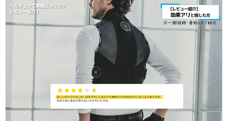 当店でペルチェベストをご購入いただいた方のレビューや、動画に対していただいたコメントを参照しているので、ぜひ参考に購入を検討してみてください。