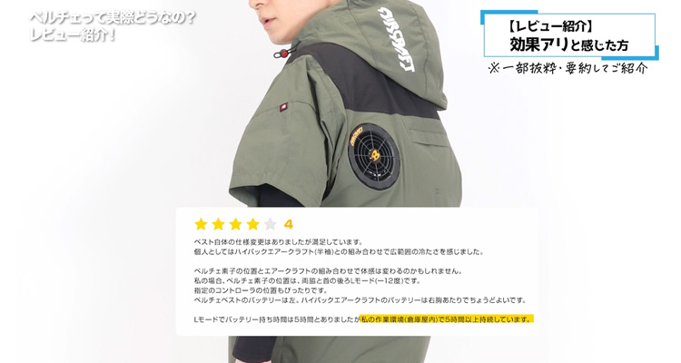 そこで今回は、実際にペルチェベストを使用されている方のリアルな感想を紹介します。