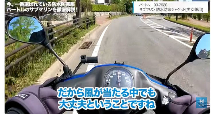 サブマリンは、薄着に羽織るだけでいいので、バイクの操作性も軽快です。
