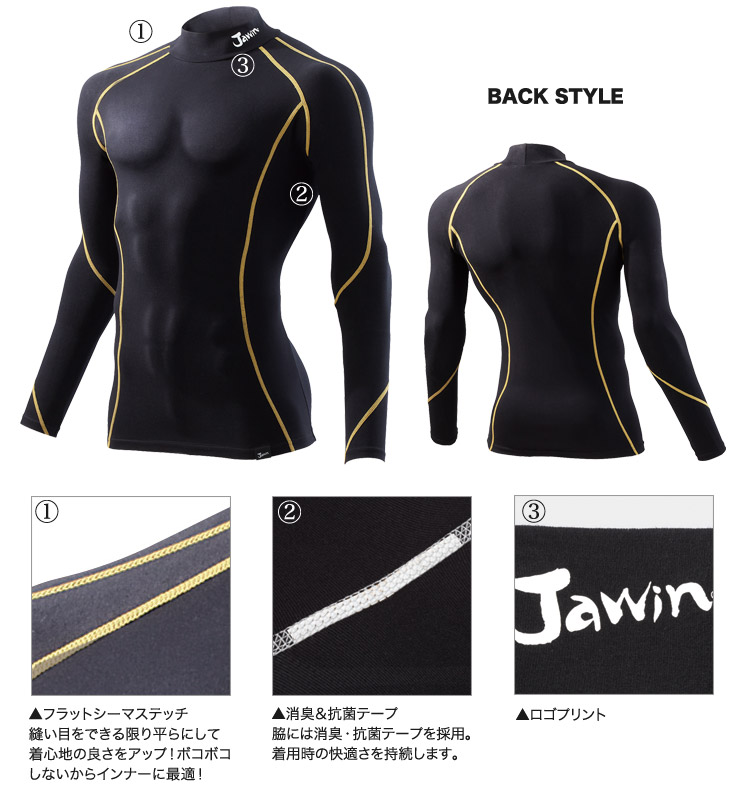 [秋冬用]Jawin綿素材ハイネックロングスリーブインナー[男女兼用](01-52024)