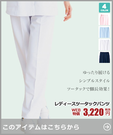 アクティブな医療シーンに欠かせない動きやすいパンツ。ホワイセルのすっきりパンツは、浅めのローライズタイプの股上で履きやすく ウエストは脇ゴムだから動きやすさも抜群!ヒップや太ももはほどよくフィットして細身に見せてくれる女性に嬉しいパンツです。