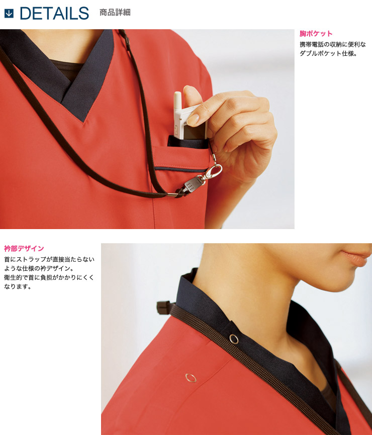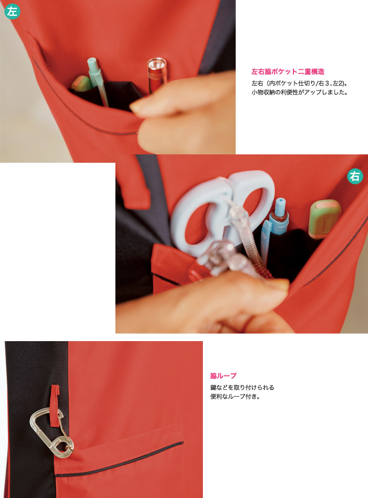 - 肩スナップボタン 消臭テープ 脇ループ 左右脇ポケット二重構造 左胸ポケット