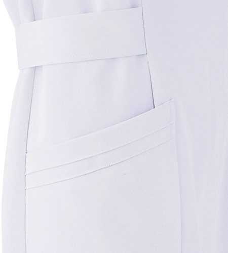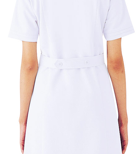 機能的で好感度の高いシンプルなデザインのワンピース白衣。 ベーシックな色とデザインはナースの自信と誇りを表現。女性らしくやさしい印象を与えるラウンドカラーや、後ろベルトを施すことにより美しいシルエットを演出。帯電防止素材を使用し、静電気のいやなパチパチ感を抑えました。