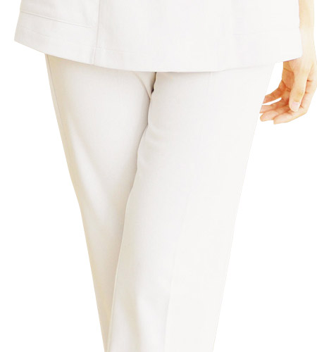 透け防止効果でインナーを気にせず着れる! アクティブな医療シーンに欠かせない動きやすいパンツ。ホワイセルのすっきりパンツは、浅めのローライズタイプの股上で履きやすく ウエストは脇ゴムだから動きやすさも抜群!ヒップや太ももはほどよくフィットして細身に見せてくれる女性に嬉しいパンツです。