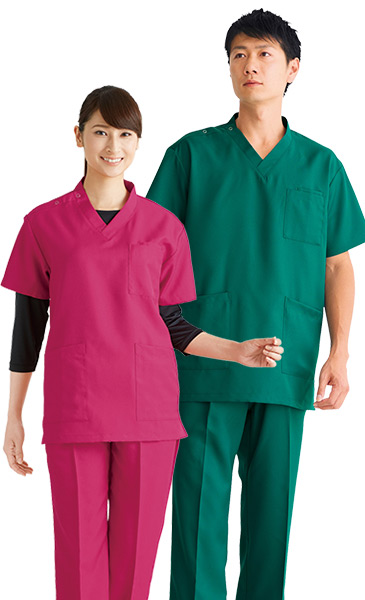 豊富なカラーバリエーションと、医療現場・介護現場に最適な機能を備えたスクラブ。 薄手で丈夫な素材は生地裏に制電素材を織り込んで、静電気を防止します。工業洗濯可能な丈夫な素材も嬉しい。
