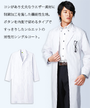 コシがあり丈夫なウエザー素材に制菌加工を施すことで、医療現場をサポート!
