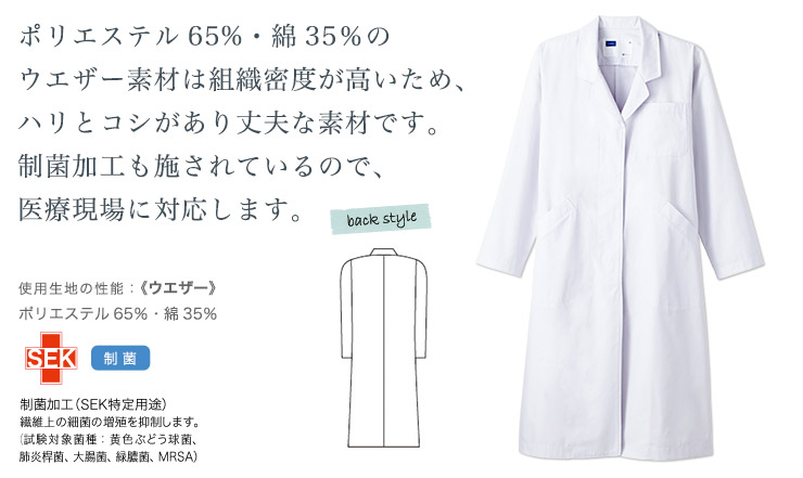 コシがあり丈夫なウエザー素材に制菌加工を施すことで、医療現場をサポート!
