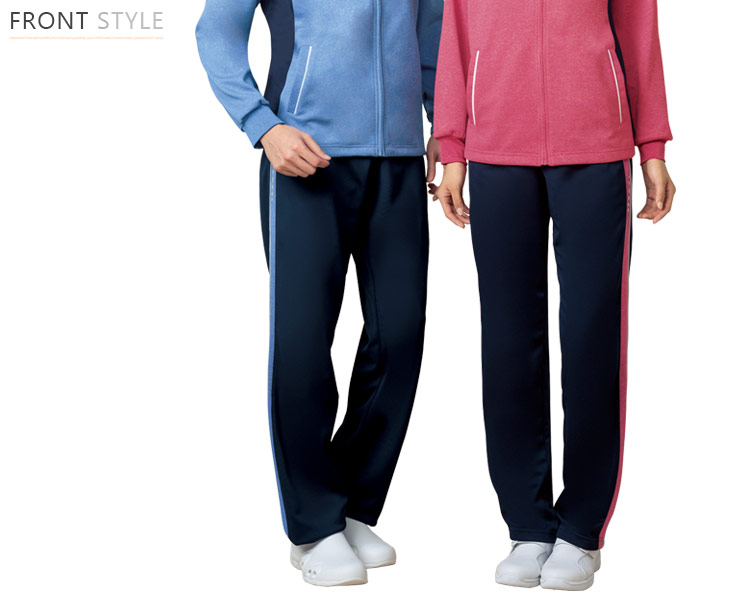 スポーティな杢調素材を使用したパンツ。コーディネートしやすいネービーをベースに、サイドの明るい配色ラインがスタイリッシュ!暗所での視認性が高まる反射プリントとポケットはファスナー付きなので、安心して作業ができます。 サイズ展開豊富で男女お揃いで爽やかに着こなせます。