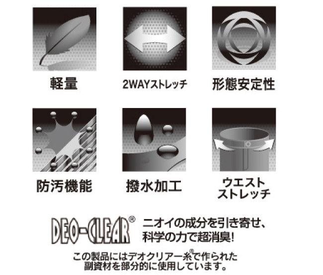 - 形態安定、防汚、撥水、ストレッチ、軽量