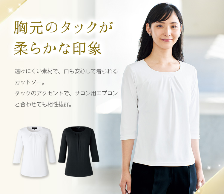 [通年]胸元タック入り 七分袖カットソー(21-01150)
