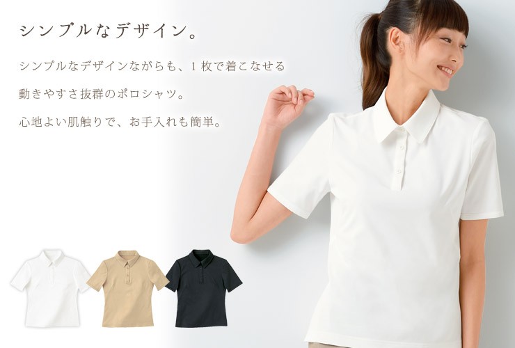 シンプルなデザインなのに、インナーでも1枚でも着られる万能ポロシャツ。 ストレッチ性の優れた、肌触りの良い素材を使用。ノーアイロンでお手入れも簡単!