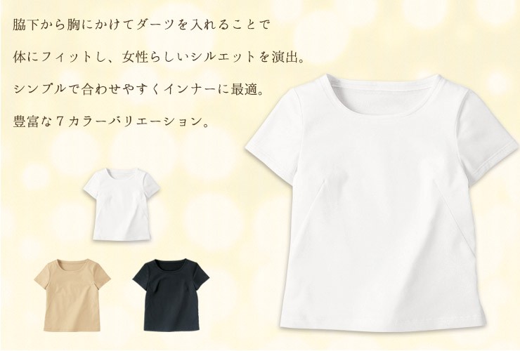 脇下から胸にかけてダーツを入れ、体にフィットさせることで女性らしいシルエットを演出。 シンプルなデザインなので、合わせやすくインナーに最適です。 選べて嬉しい豊富なカラーバリエーション。