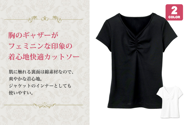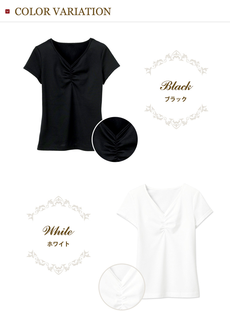 [春夏用]半袖ギャザーありVネックT(23-WP311)