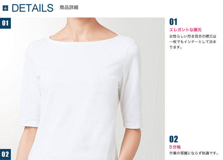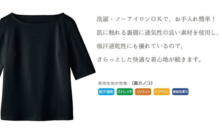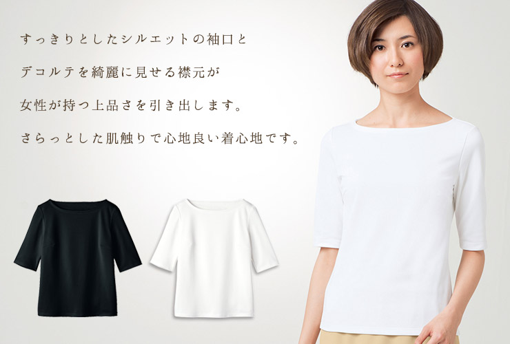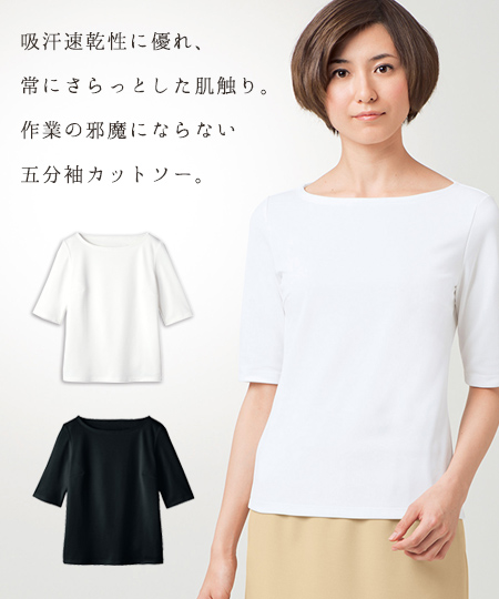 吸汗速乾性に優れ、常にさらっとした肌触りの5分袖カットソー。