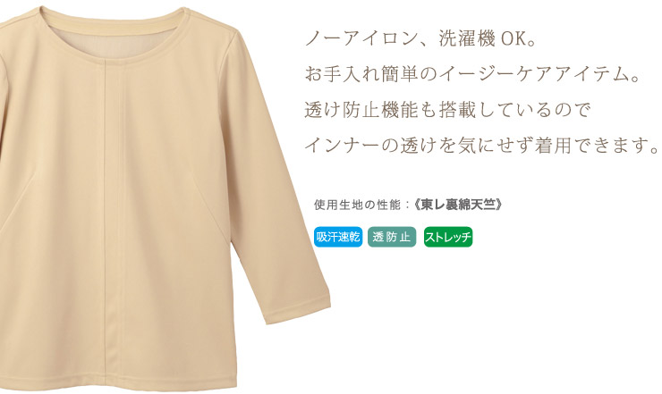 - ノーアイロン 洗濯機OK、吸汗、透防止、ストレッチ