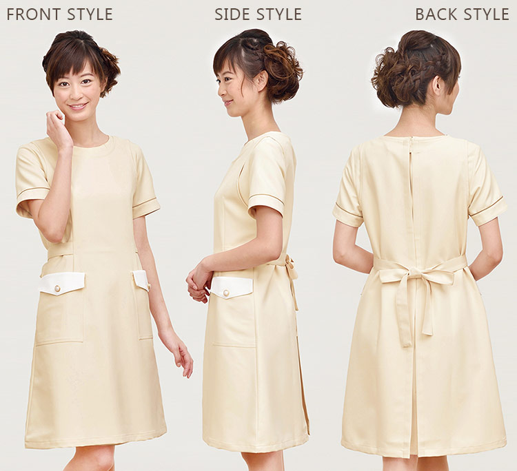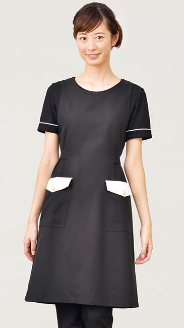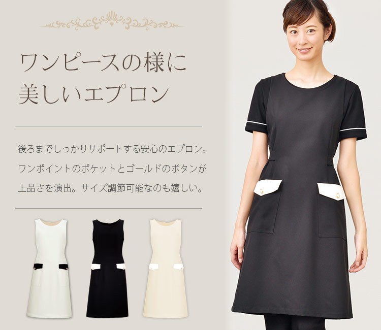 新規採用の方のサイズが分からず、大きな人でしたので、サンプルをいくつかお借りできて良かったです。ワンピースやジャケットはXLでも着れませんでしたが、これはエプロンに見えないくらいワンピース感があって、パツパツに見えなくて、使い勝手がいいと思います。
