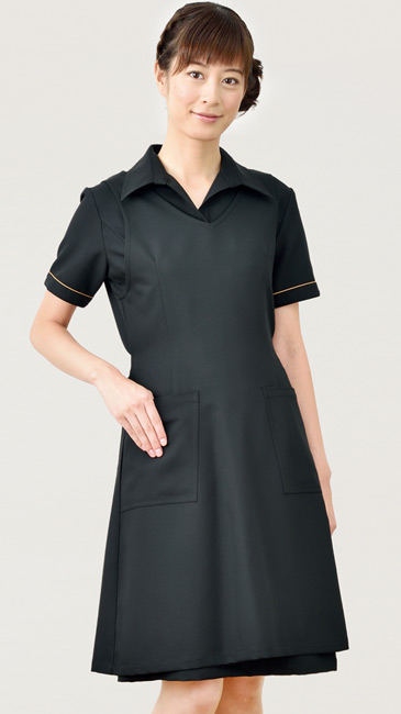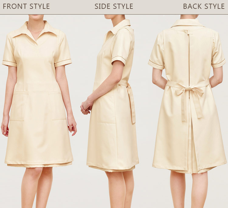 - 両脇ポケット付、ウエストリボン、後ろボタン調整