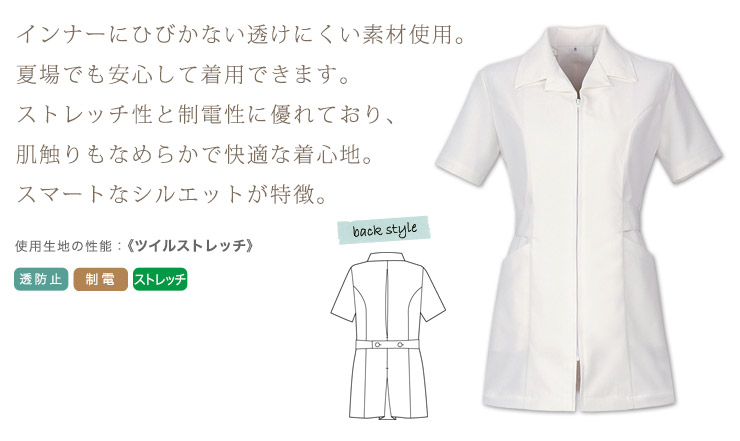 透けにくく、ストレッチの効いた素材を使用。なめらかなやさしい肌触りで制電性にも優れ、快適な着心地が長く続きます。
