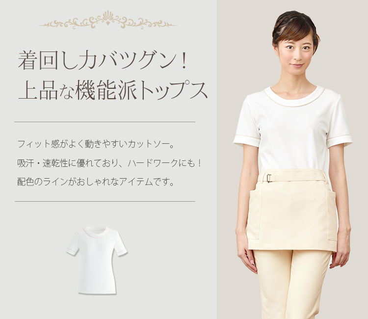 フィット感がよく動きやすいカットソー。吸汗・速乾性に優れており、汗をかくハードワークにもぴったり!配色のラインがおしゃれで着回し可能なアイテムです。