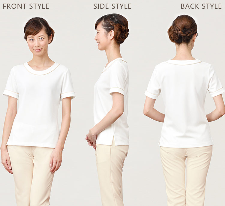 スッキリとして女性らしさも感じさせる襟ぐり袖口パイピング