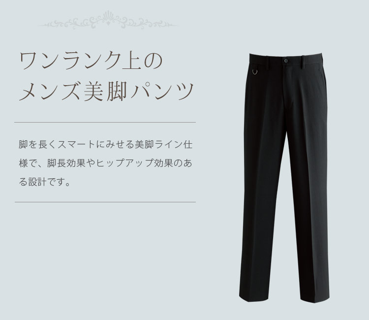 ワンランク上の着こなしができる美脚ライン仕様のメンズパンツ。 後ろポケットの位置を上げてヒップアップ効果を出す事で、脚のラインをより長くスマートにみせます。