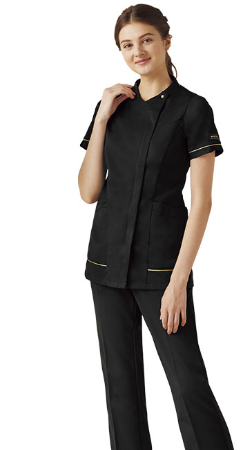 人気のミッシェルクランのナースジャケット。落ち着いた雰囲気とフェミニンなニュアンスを併せ持った美しいデザイン。新素材コネクトでストレッチ性と型ずれいしにくく、毛玉も出来にくくシワにもなりにくい。スマホポケットやループなど充実した収納に制菌、制電、透けないなど女性に嬉しい機能も満載。