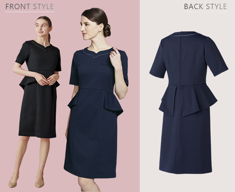 - 後ろファスナー、左胸ポケット、両脇ポケット、右ヒップポケット(コード通し用ホール付)、裾センターベント