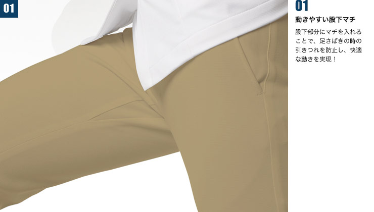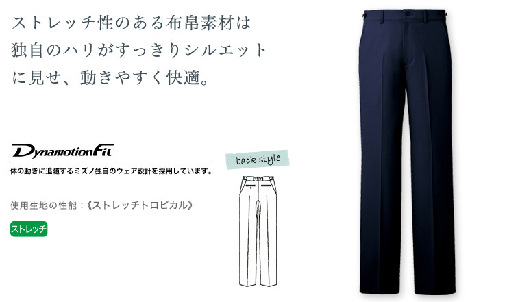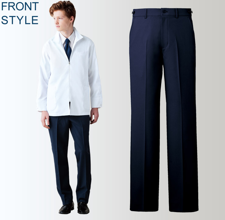 - 股下マチ付、アジャスター、 両脇ポケット(右のみ中ポケット付)、裏地無し、ノータック、 左右ヒップポケット、前ファスナー付き