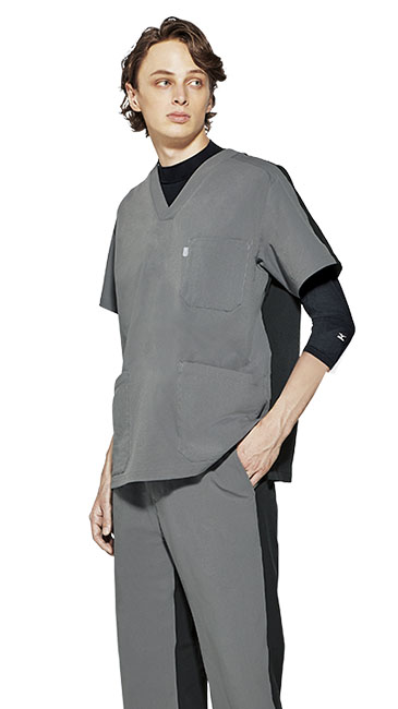 自然な風合いでサラッと軽くエアリーな風合いとハリ感もあるスクラブ。4wayストレッチだから抜群に動きやすく快適。