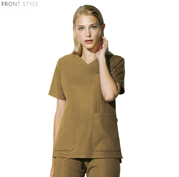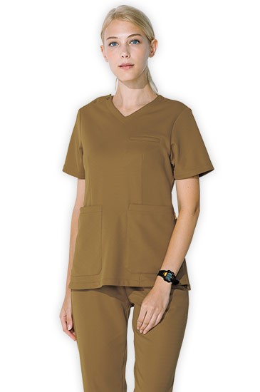 ストレッチ性能に優れ、やわらかく快適な着心地のスクラブ。美しいシルエットはスタイリッシュな印象を与えてくれます。上質な素材ならではの繊細で落ち着いた風合いのカラー展開も魅力で、男女でのトータルコーディネートも可能です。