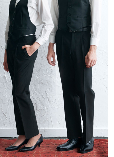 世代を問わずオールマイティに使えるワンタック仕様。ワンタック入れることでほどよいゆとりが生まれ、窮屈感がありません。