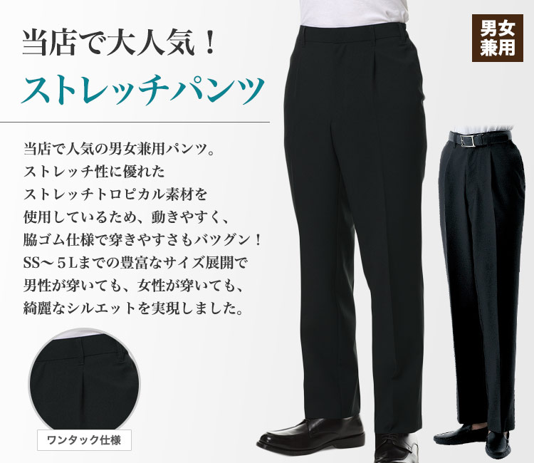 当店で大人気!穿き心地抜群でシルエットも綺麗な男女兼用ストレッチパンツ。