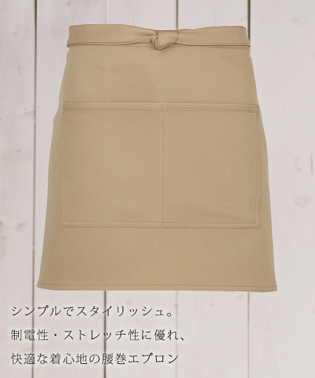 制電性・ストレッチ性に優れ、快適な着心地が長く続く腰巻エプロン。