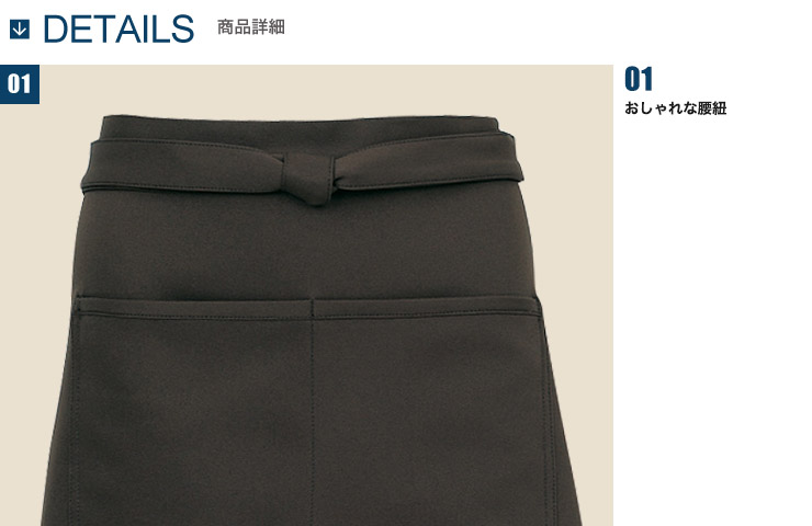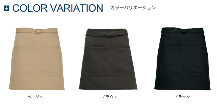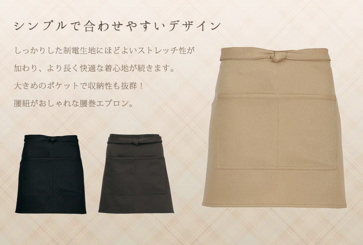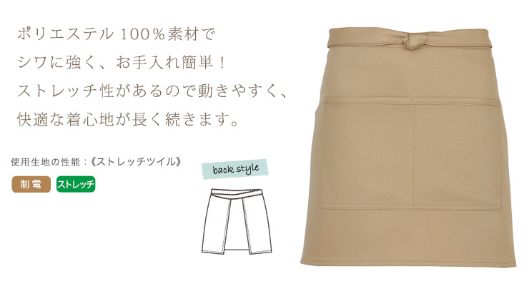 制電性・ストレッチ性に優れ、快適な着心地が長く続く腰巻エプロン。