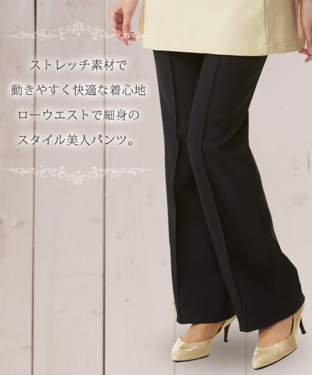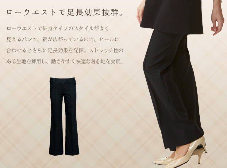 ローウエストで細身のスタイル美人パンツ。