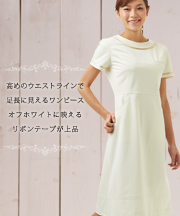 高めのウエストラインで足長効果のあるワンピース。