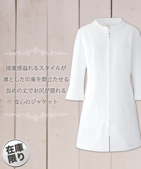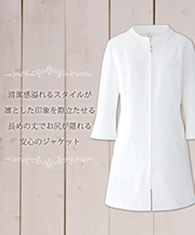 すっきりしたスタンドカラーと清潔感溢れるスタイルで凛とした女性を演出。