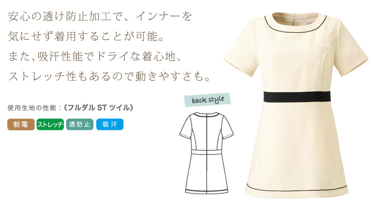 上品でガーリーな雰囲気を演出します。下着の透け防止や、汗のにじみ、静電気を防ぐ高機能素材を採用。