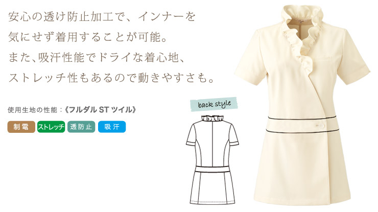 上品でガーリーな雰囲気を演出します。下着の透け防止や、汗のにじみ、静電気を防ぐ高機能素材を採用。