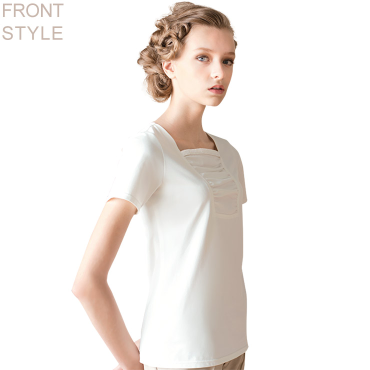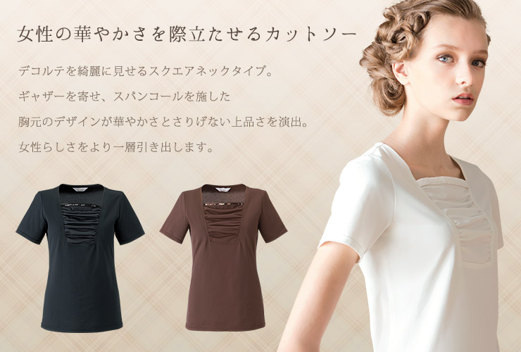 デコルテを綺麗に見せるスクエアネックタイプ。