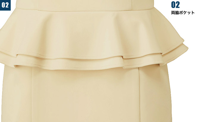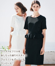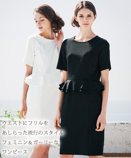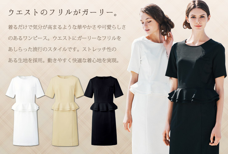 ウエストにガーリーなフリルをあしらった流行のスタイルです。