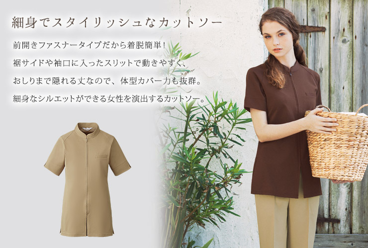 袖口や裾サイドのスリットで動きやすさも抜群な快適カットソー。